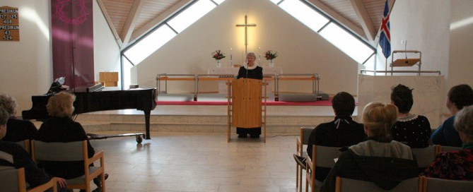 Séra Auður Eir Vilhjálmsdóttir predikar. Aðalheiður Þorsteinsdóttir leiðir okkur í